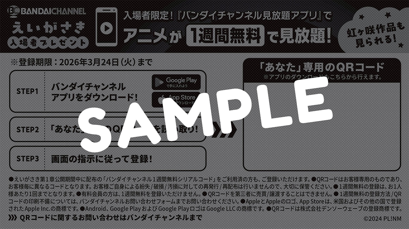 - ※えいがさき第1章公開期間中に配布の「バンダイチャンネル1週間無料シリアルコード」をご利用済の方も、ご登録いただけます。