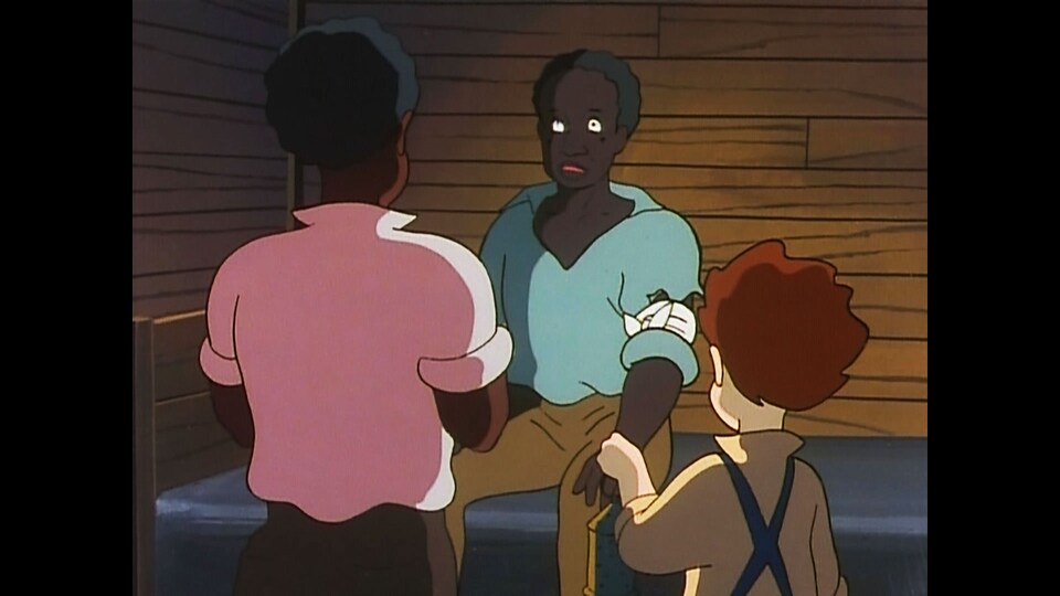 ある夜の事。僕の家にジムを訪ねて、黒人のモーリスがやってきた。働いている農場から逃げてきたらしい。川を下った所にあるケアロって町に行けば、奴隷も自由になれるんだって。モーリスはそこを目指していた…。