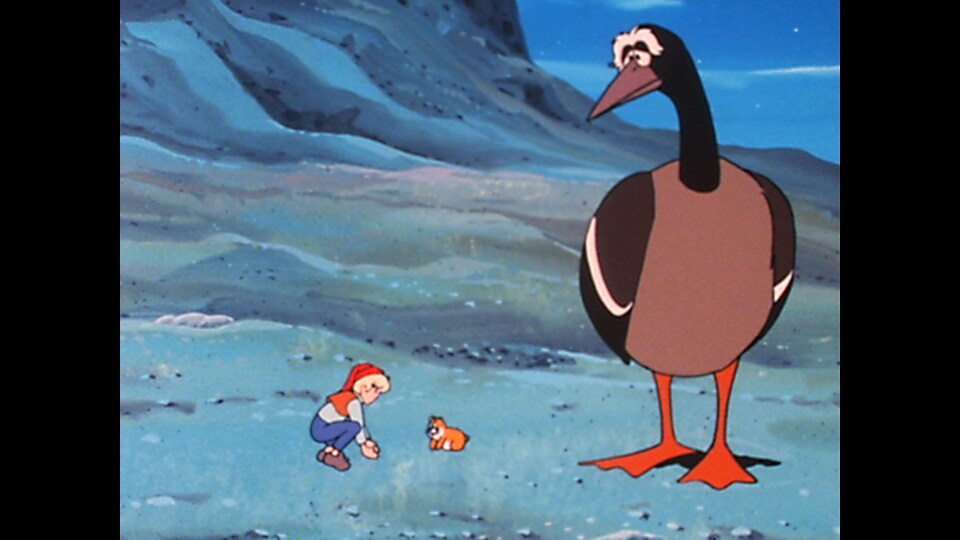 ニルスがもとの人間にもどるためには、仲良くしているガチョウの命が必要だと妖精は言う。今や、モルテンは、ニルスのかけがえのない友達だ。「どうしたらいいんだろう?」立ち聞きしたニルスの心は激しく揺れ動く。