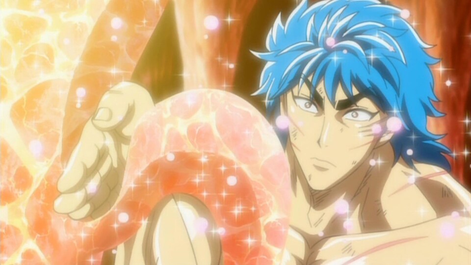 スタージュンGTロボの痛恨の一撃で力尽きたトリコは、ティナのいた場所まで吹き飛ばされてしまう。ティナが呼びかけても一向に目を覚まさないトリコ。そこでティナは、光り輝く肉汁をトリコに与える。すると、ボロボロだったトリコが、その味に反応して目を覚まし…。