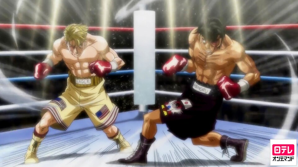 血飛沫を上げ打ち合う鷹村とイーグル。インターバルで止血、リング上で再び噴出を繰り返すその試合展開は、いつドクターストップがかかってもおかしくない。試合の最中、両目が塞がってイーグルを視認すらできなくなった鷹村は絶望的な状況になってしまうが…。その拳はイーグルのある場所だけを的確に狙っていた。果たしてチャンピオンベルトに降り立つのは鷹か!? 鷲か!?