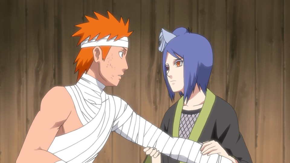 やっとのことで追い詰めたものの、禁術を使い致命傷を免れたマダラに衝撃を受ける小南。その時ふいに、奇跡のような光景が目の前に広がる。やむことのなかった雨隠れの雨がやみ、美しい虹が現れたのだ。それを目にした小南の心に、再び希望がよみがえる。平和な世の中を目指して戦い、死んでいった仲間たちの思いを受け継ぎ、つないでゆけるのはナルトしかいないと考える小南は、その妨げになるであろうマダラを葬り去るため、さらなる戦いを挑む。