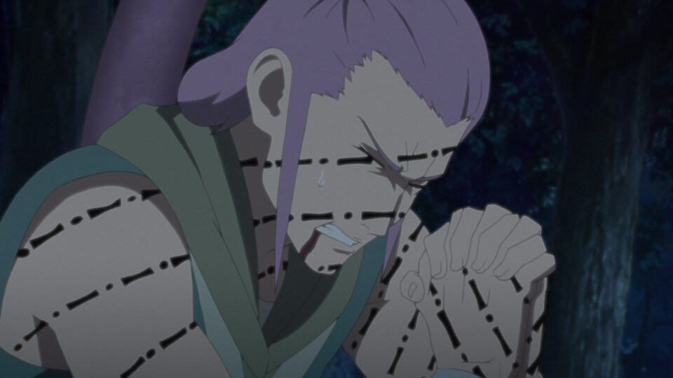 ユウガの結界から抜け出したボルトたちだったが、今度は兄弟の次男・ヒルガに足止めされることになる。ユウガ同様、自分たちに与えられた任務のためならばどんな方法を使ってもやり遂げようとするヒルガの術によって動きを封じられてしまうボルトたち。術を解こうともがくボルトは、自らの命も顧みない兄弟の戦い方にとまどい、その理由を問い詰める。そんなボルトにヒルガが話したこととは……?