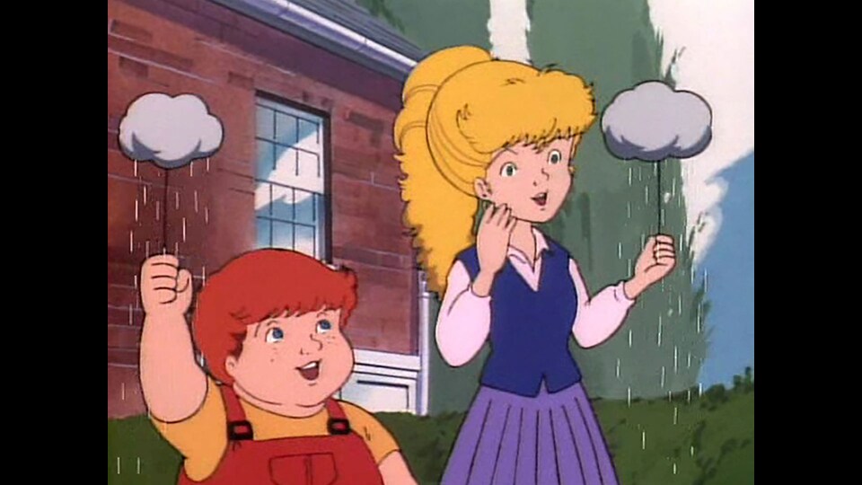 何日も雨が降らないせいで、町中が乾ききってしまった。庭の花を枯らしたくないジェーンは、サミアどんに雨を降らせてくれるように頼む。水が大の苦手のサミアどんは断固拒否するのだが、悲しむジェーンのために手の平サイズの雨雲を四人分だけ出してやることにした。ジェーンたちは小さな雨雲であちこちに水をまき始める。 / 街のおもちゃ屋に出かけることになったシルたち。家から持ってきたクマのぬいぐるみが車から落ちたことをきっかけに、こっそりと隠れてついてきたサミアどんは、魔法をかけて動くようにしてしまう。動くクマと一緒に買い物を楽しむシルたちだったが、クマが急に逃げ出してしまった。子供たちは慌てて追いかけるのだが……。(C)TMS