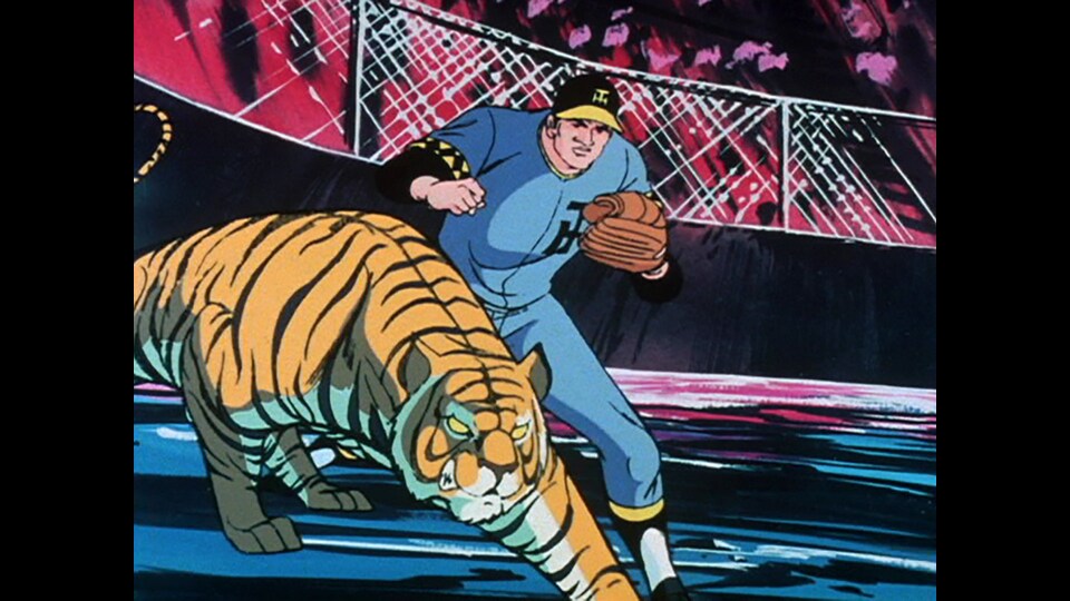 対・阪神タイガース戦。「スクリュースピンスライディング打倒宣言」をした掛布とビル・サンダー。その言葉を胸に、代打としてヒットを放った飛雄馬。通常なら二塁打のところを、阪神の選手たちはあえてロストボールし、飛雄馬を三塁へ向かわせる。その罠に気づいた飛雄馬は、一度二塁へ。そして再び勝負へ。掛布へスクリュースピンスライディングを仕掛けた飛雄馬。対して掛布も、スクリュースピンしながら飛び上がった。空中で激突し、互いに傷ついた飛雄馬と掛布。先にタッチするかベースをつかむか…。その結果は…。