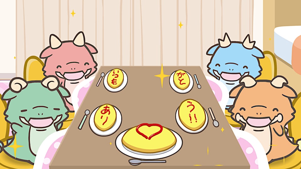 珍しく落ち込んでいるぬし。めらたちの励ましで何とか気持ちを切りかえ、オムライスを作りました。その上にめらたちがケチャップで書いたメッセージとは……!?