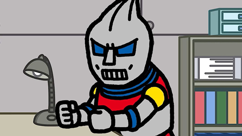 ちびJJに逮捕され取り調べをうけているちびラドン。いわれのない罪で厳しい取り調べを受けていると隣の部屋でちびゴジラも取り調べを受けているようで…