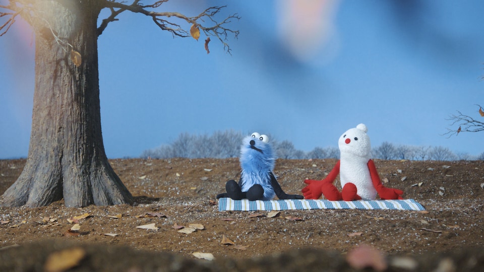 スンスンとノンノン、電話対応をする/木をながめる