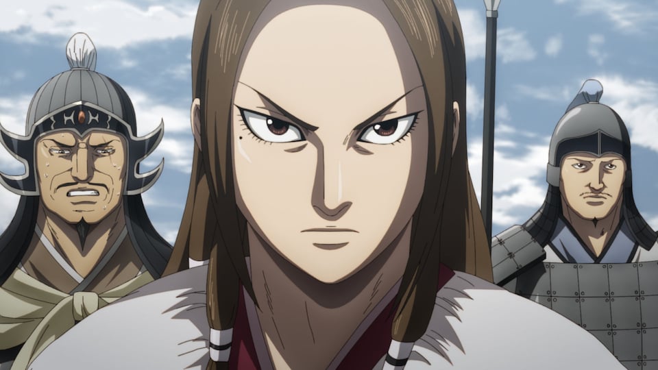 信たちと楽華隊の奮闘で士気が戻った麻鉱軍。蒙恬はこの勢いに乗り、前線を押し戻すべく次の一手を打つ。一夜明け麻鉱軍が立て直しを図る中、反対側の戦場では玉鳳隊が亜光軍と共に対する趙軍と戦っていたが、その最中、機会を伺っていた趙峩龍(ちょうがりゅう)軍が王賁を討ち取ろうと出撃。趙軍の「陰の英傑」と呼ばれる趙峩龍軍の猛攻に防戦一方の玉鳳隊。だがその時、王賁の脳裏に以前蒙恬が語った“ある言葉”が甦り……!?