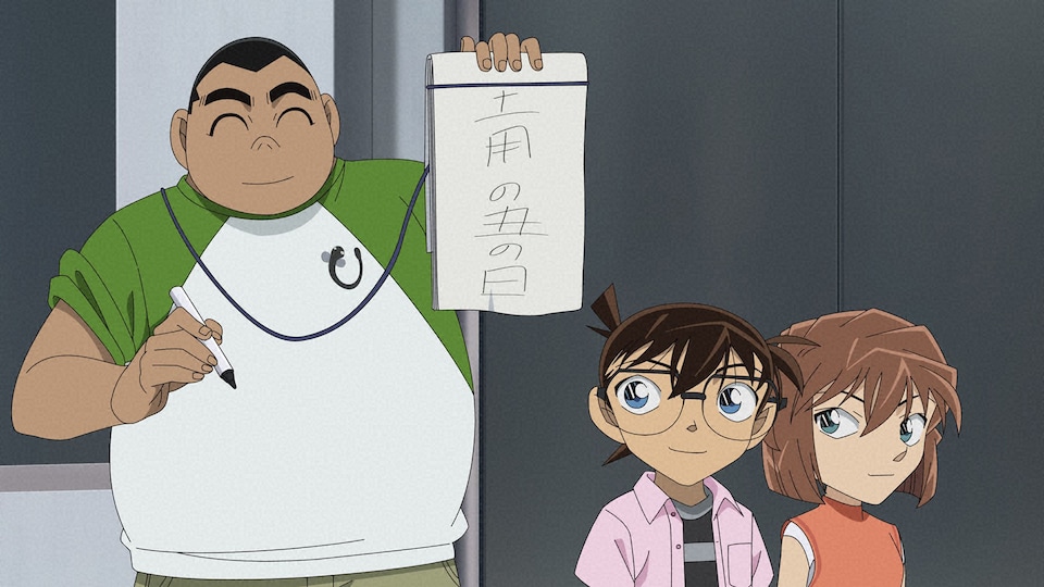 コナン、歩美、光彦、灰原は、先に帰ったはずの元太が、おかもちを抱えて走る姿を見かける。鰻屋『銀八』の大将が足を怪我してしまい、元太が代わりにうな重の配達をしていたのだ。配達を終えた元太が店に戻ろうとすると、野次馬が集まっており「大将が左胸を刺されて倒れていた」と知らされる。少年探偵団は、事件解決のため容疑者たちに話を聞きに行くことになるが……。うな重の平和を守るため、元太のうなぎ捕物帳が始まる!