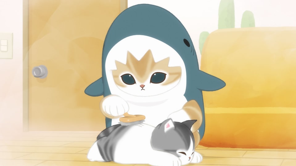 サメにゃん、ちびにゃんの毛をブラッシング中に職人スイッチON! 集めたふわ毛をコロコロ丸めて、究極の毛玉ボールを制作。出来上がった毛玉ボールに、ちびにゃんがまさかの大興奮!?
